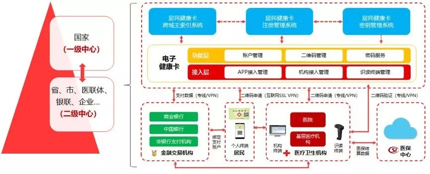 創業電子健康卡管理信息系統是電子健康卡的核心系統,具有賬戶管理、二維碼管理、密碼服務等功能,并對外部接入的機構和終端進行管理;電子健康卡管理信息系統可按照主索引生成方案生成主索引ID;電子健康卡管理信息系統與注冊管理系統連接,保證電子健康卡數據與實體卡數據同步;市級或省級沒有注冊管理系統,電子健康卡管理信息系統將直接與國家注冊管理系統連接。