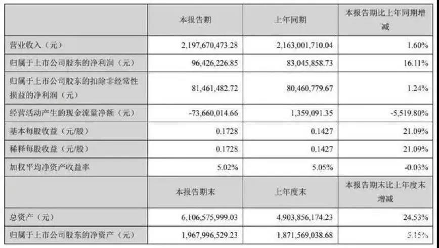 上半年實現(xiàn)凈利潤0.96億元 同比增長16.11%