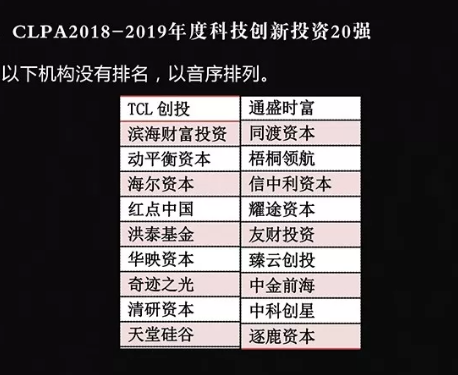 CLPA2018-2019年度科技創新投資20強