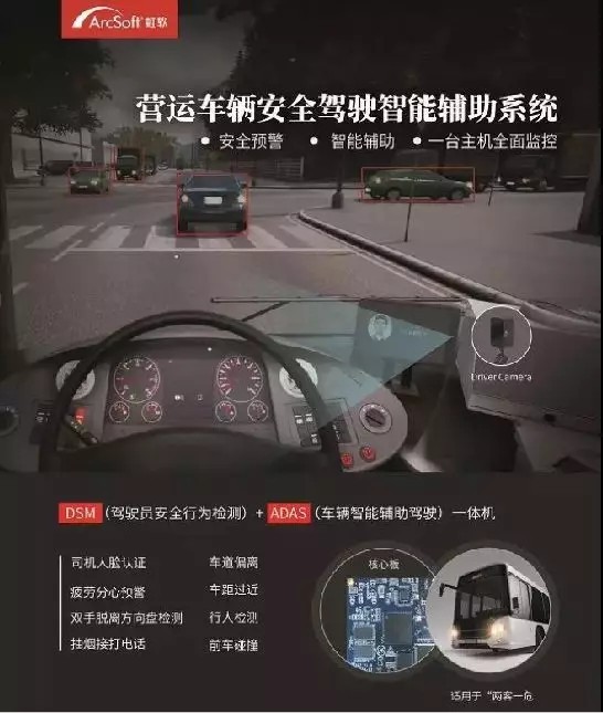 通過嵌入式終端設(shè)備搭載AI影像增強(qiáng)技術(shù)、人體與人臉分析技術(shù)、AI全景成像技術(shù)、AI視覺認(rèn)知技術(shù)、人像與人體視覺技術(shù)等一系列基于卷積神經(jīng)網(wǎng)絡(luò)的虹軟原創(chuàng)視覺AI算法,無論在前裝還是后裝中,虹軟的DSM、ADAS、BSD(盲區(qū)檢測)等車載視覺智能技術(shù)已可實現(xiàn)駕駛員身份識別、疲勞檢測、分心檢測、吸煙檢測、雙\單手握方向盤檢測、接打電話檢測、手勢舒適度操控、車道偏離報警、前車碰撞報警、盲區(qū)檢測報警、車距過近報警等全套功能。